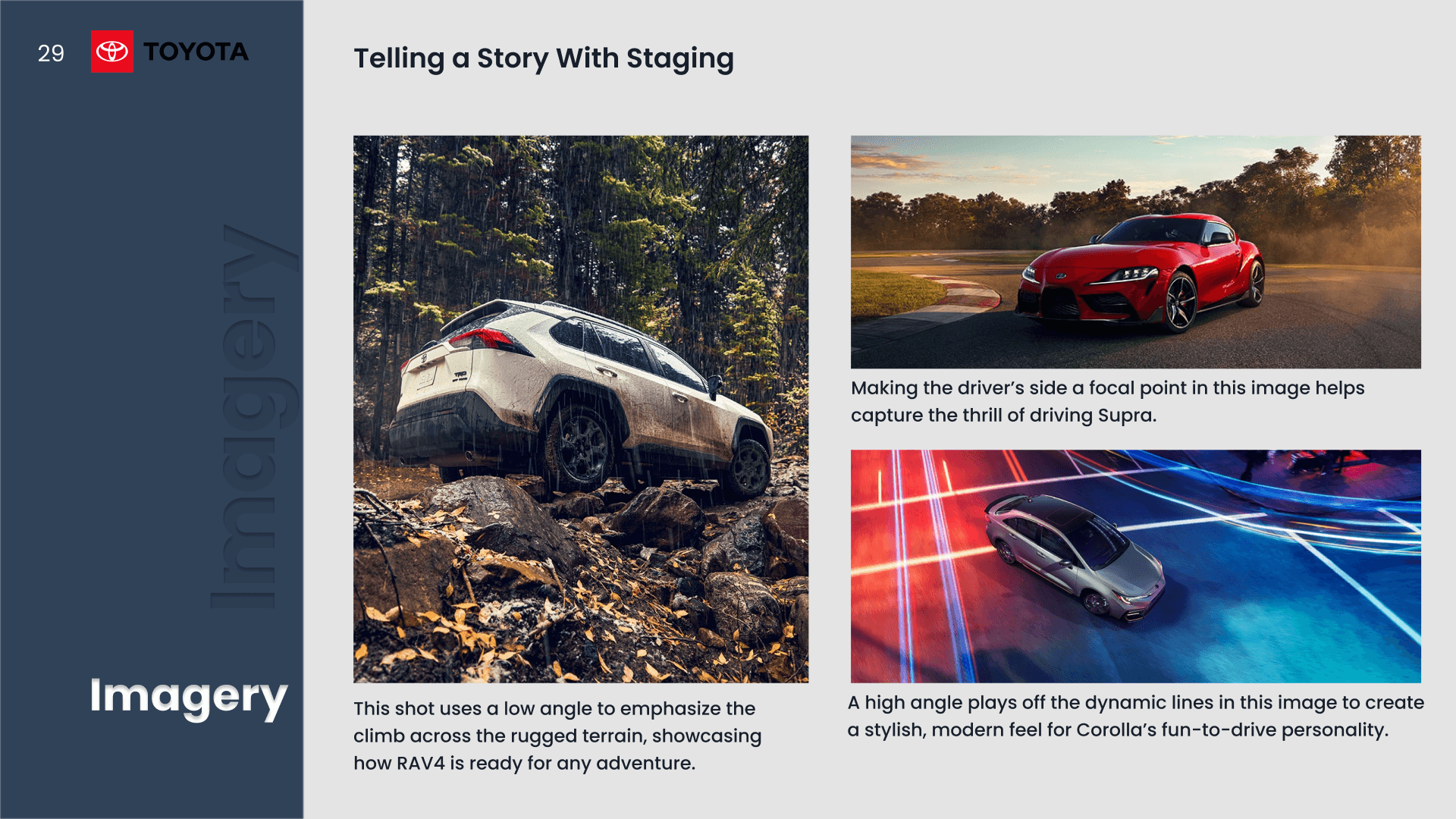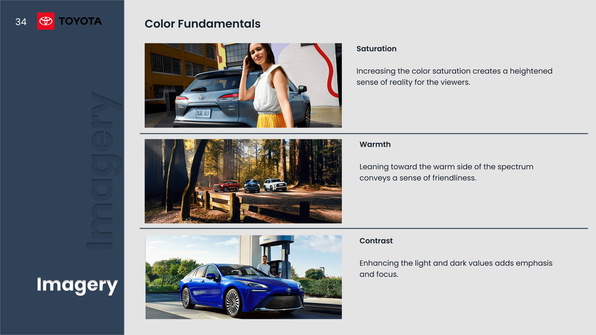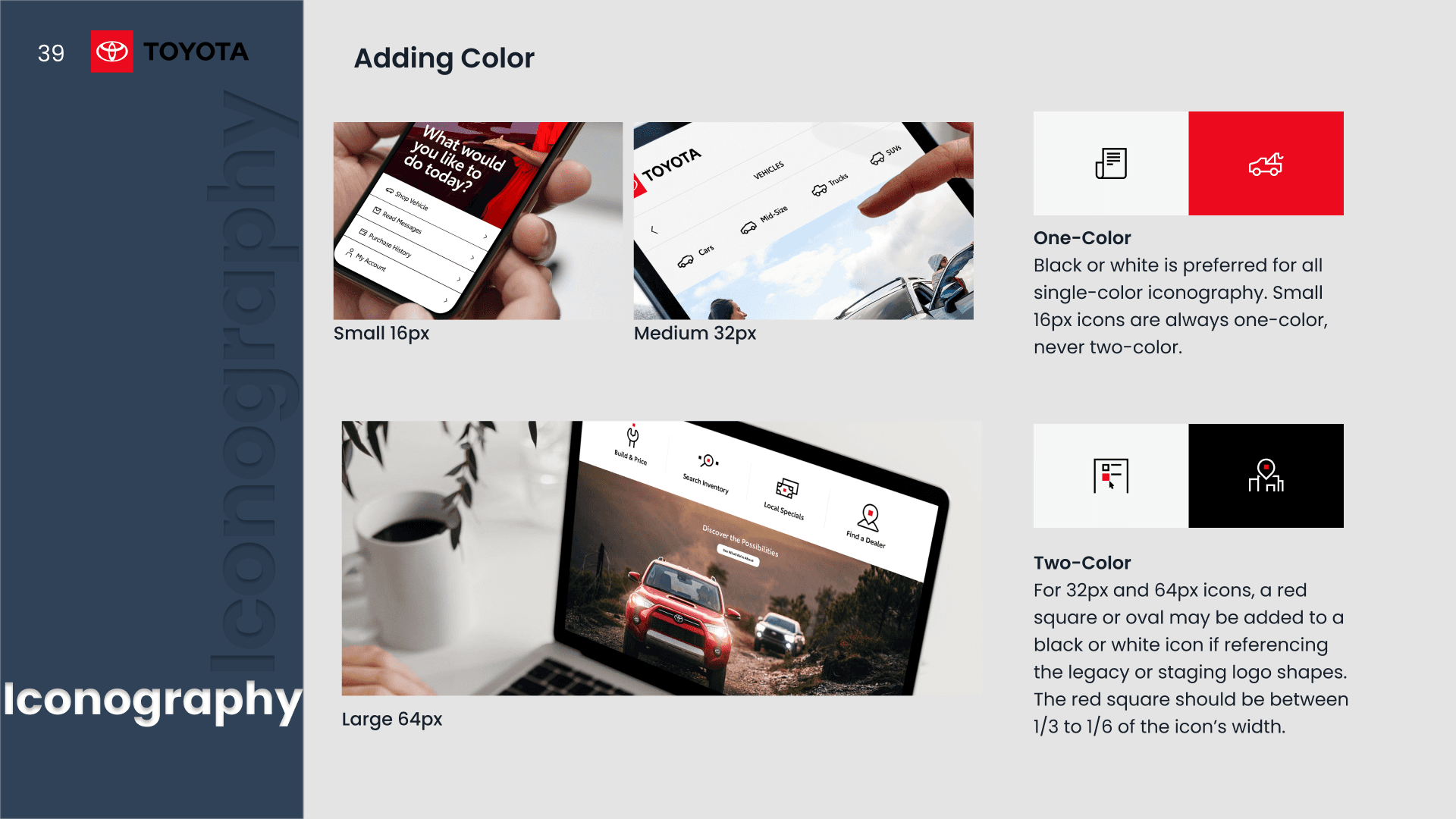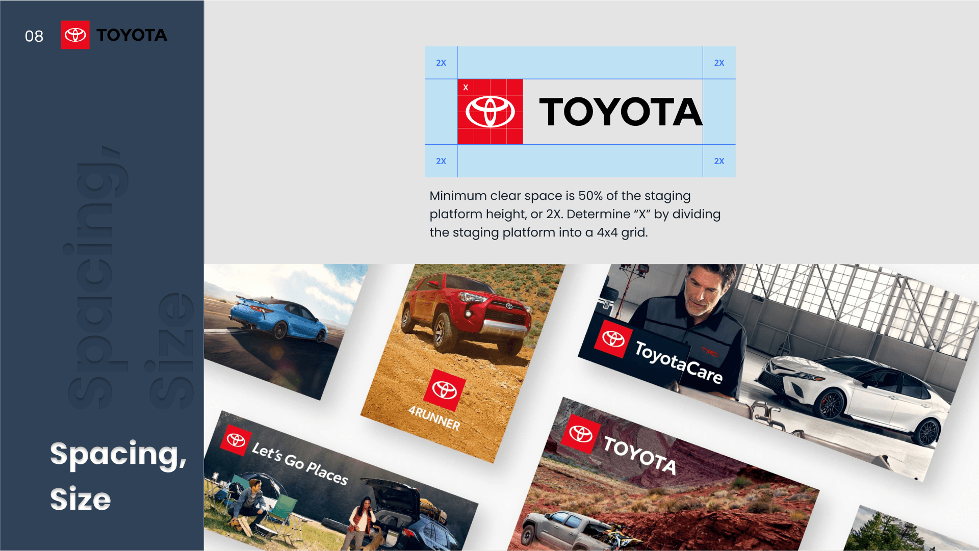 A presentation analyzing Toyota and Audi’s design systems through typography, color, layout, and visual hierarchy.