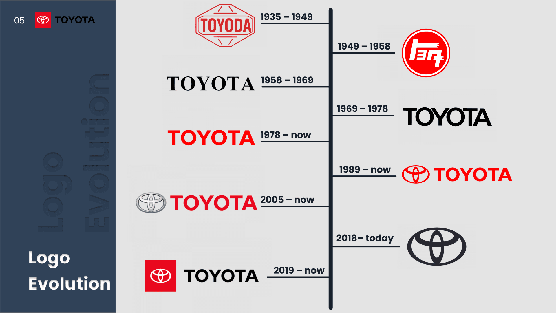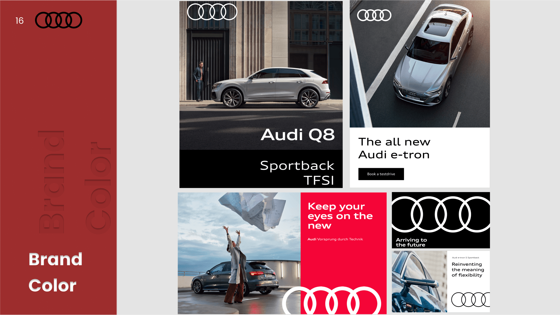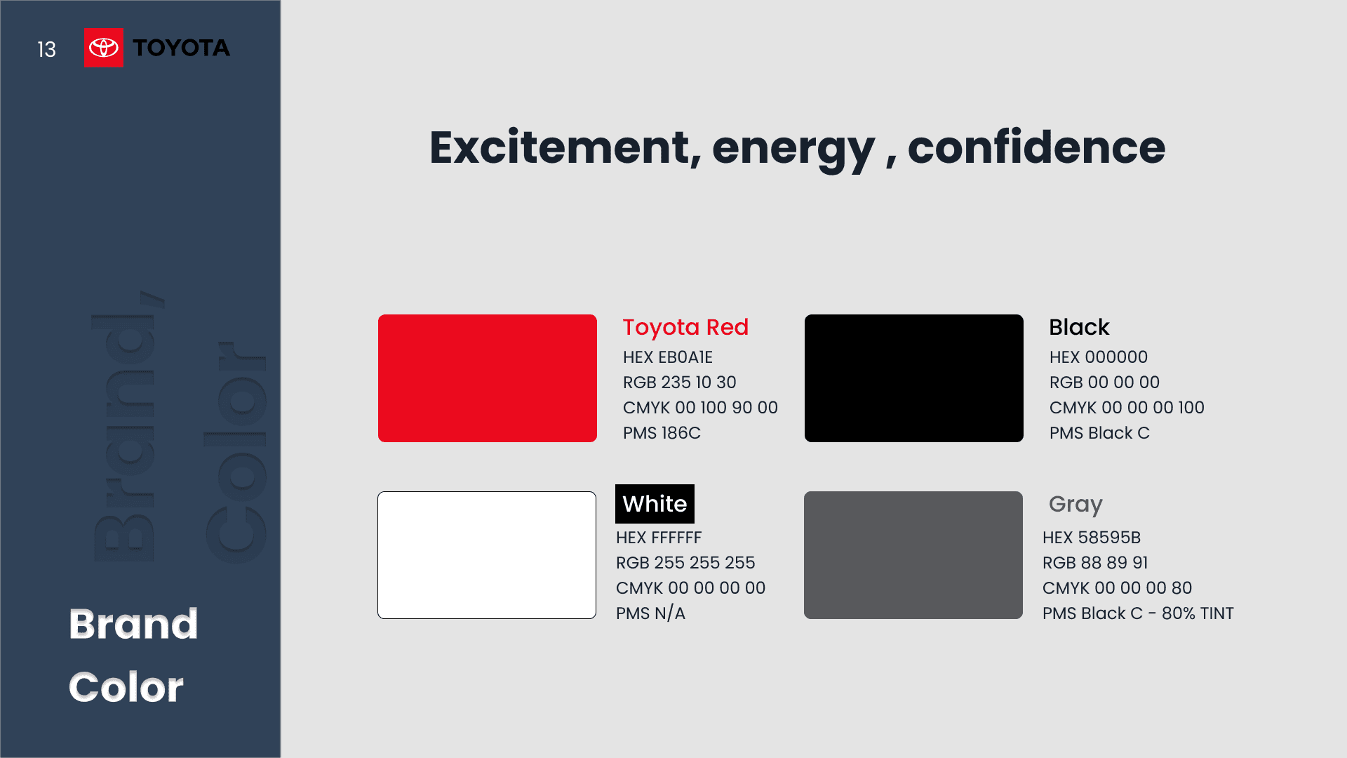 A presentation design project comparing the design systems of Toyota and Audi. The analysis explores typography, color systems, layout structure, and visual hierarchy to understand how each brand expresses identity and user experience through its visual language.