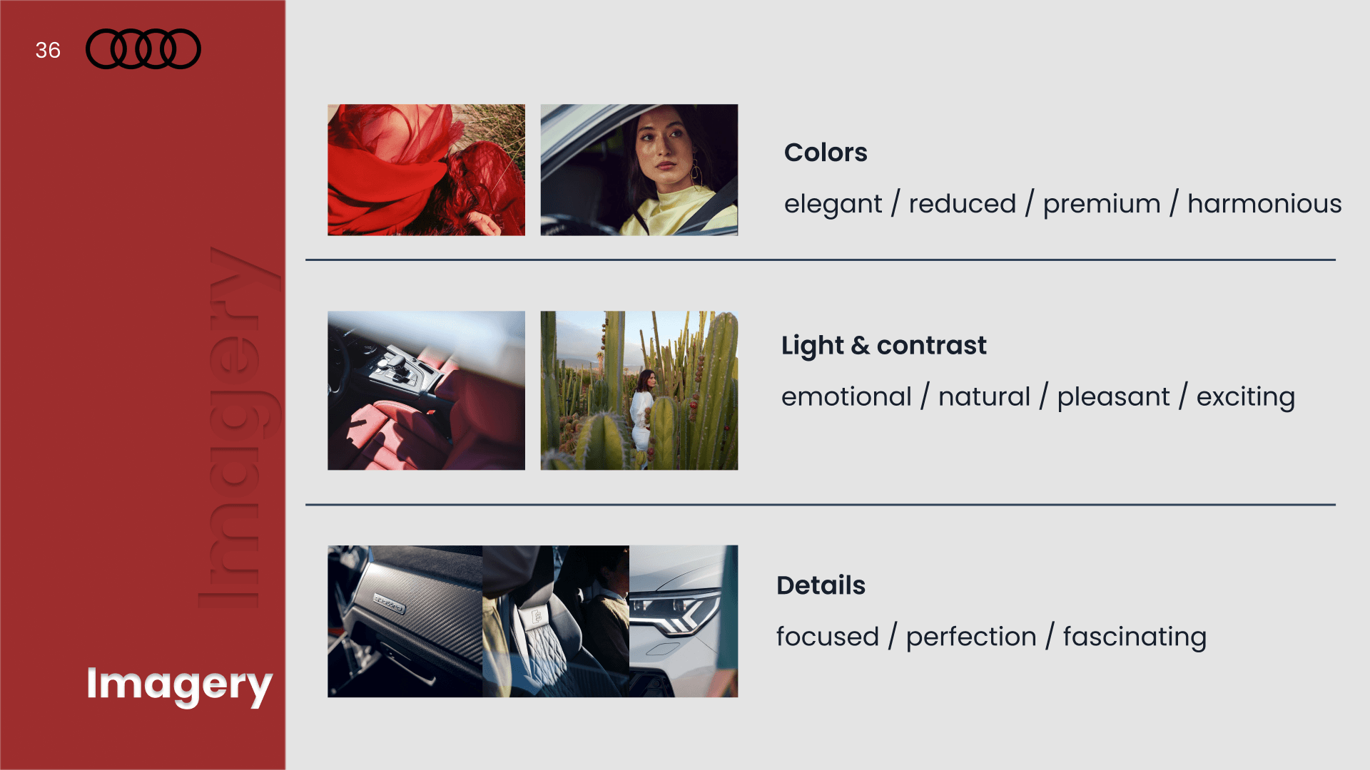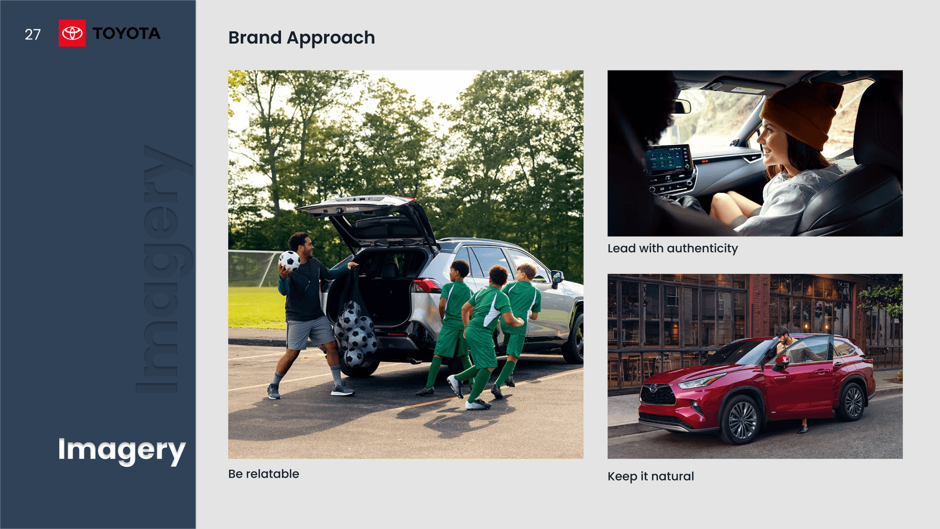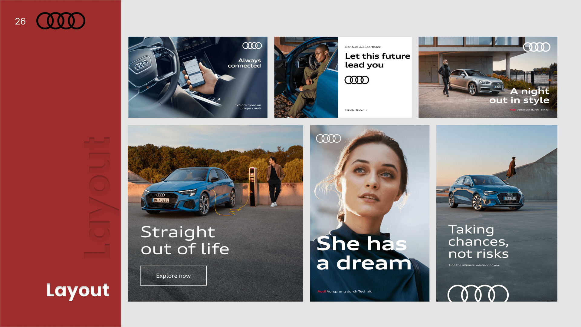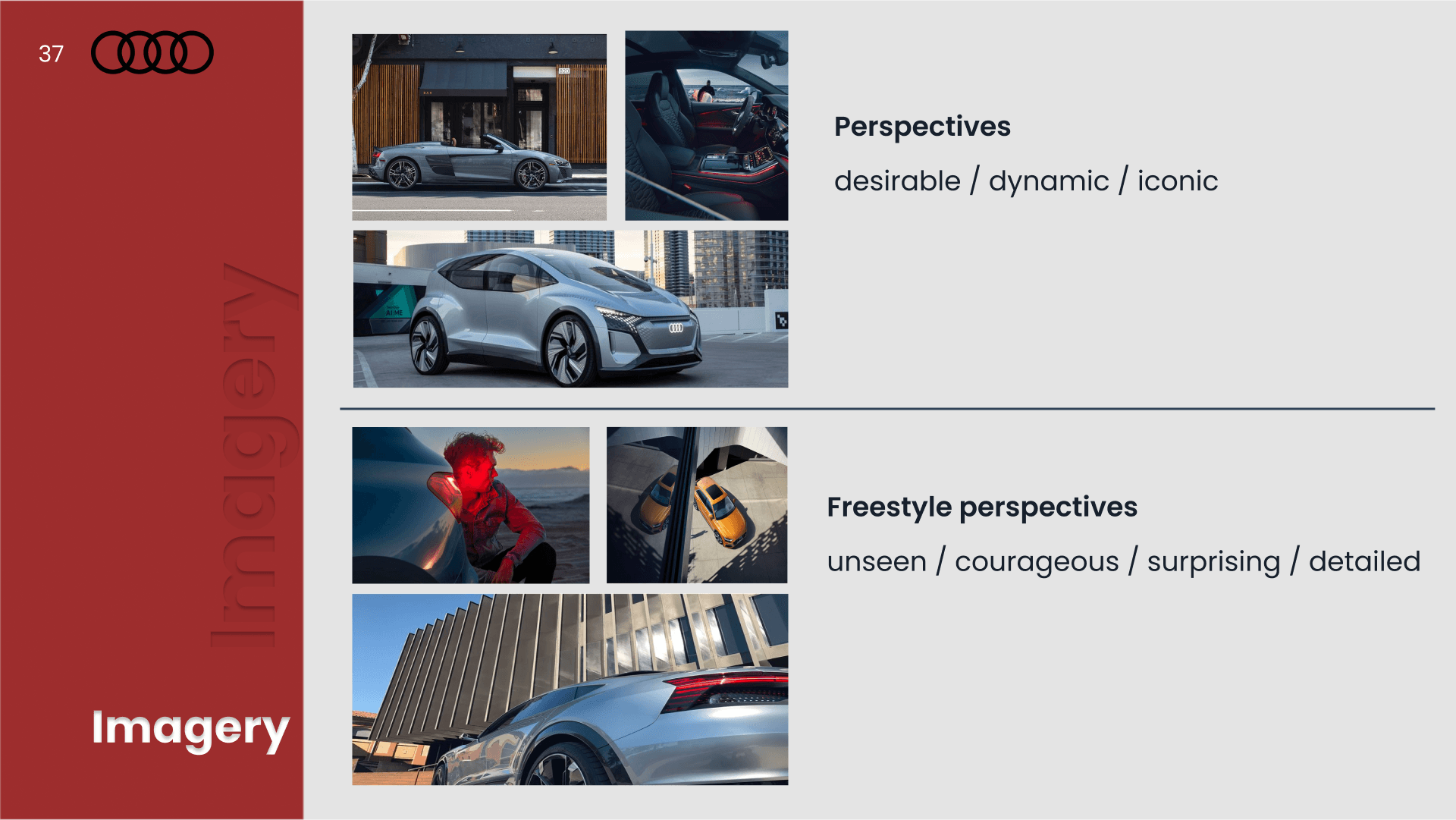 A presentation design project comparing the design systems of Toyota and Audi. The analysis explores typography, color systems, layout structure, and visual hierarchy to understand how each brand expresses identity and user experience through its visual language.